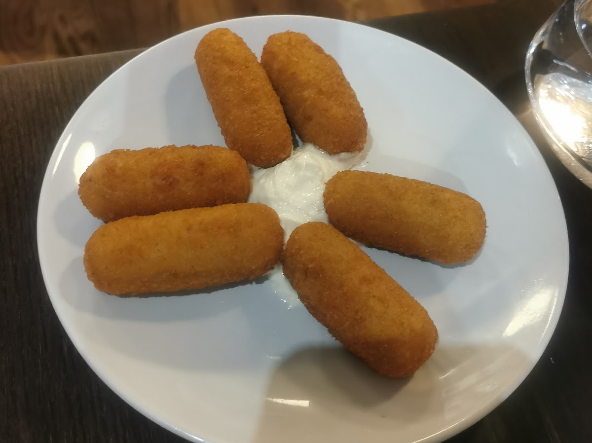 Another highlight on the menu is the Croquetas, which are golden and crunchy on the outside, with a creamy, savory filling that’s pure comfort in every bite. The Olive Oil Garlic dish brings together fresh, aromatic garlic and olive oil, offering a simple yet flavorful option for those who enjoy bold Mediterranean flavors. And don't forget to try the Padrón Peppers-these little green peppers, sautéed with a dash of sea salt, bring just the right amount of heat and smokiness, making them a perfect snack or side to complement any of the other tapas.